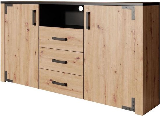 Het dressoir heeft een praktisch design met 2 deuren en 3 lades.